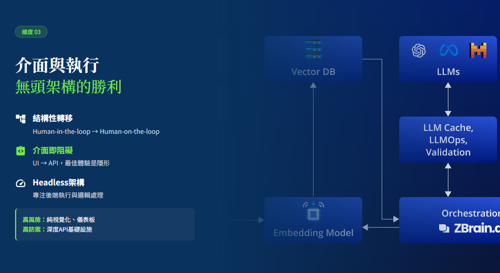 對於 AI Agent 而言,專為人類設計的圖形介面 (GUI) 反而是多餘的阻礙。未來的頂級 SaaS 將呈現「無頭化 (Headless)」趨勢,其核心價值將從前端的視覺呈現,轉移至後端複雜的邏輯處理與 API 基礎設施。