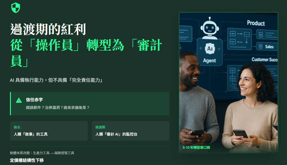 這種機構慣性,為服務大型企業的傳統 SaaS 提供了寶貴的轉型緩衝期。