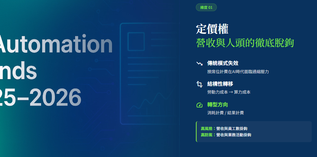 具備防禦性的企業必須重塑定價模型,從單純的販賣工具,轉向販賣「結果」或「消耗」。