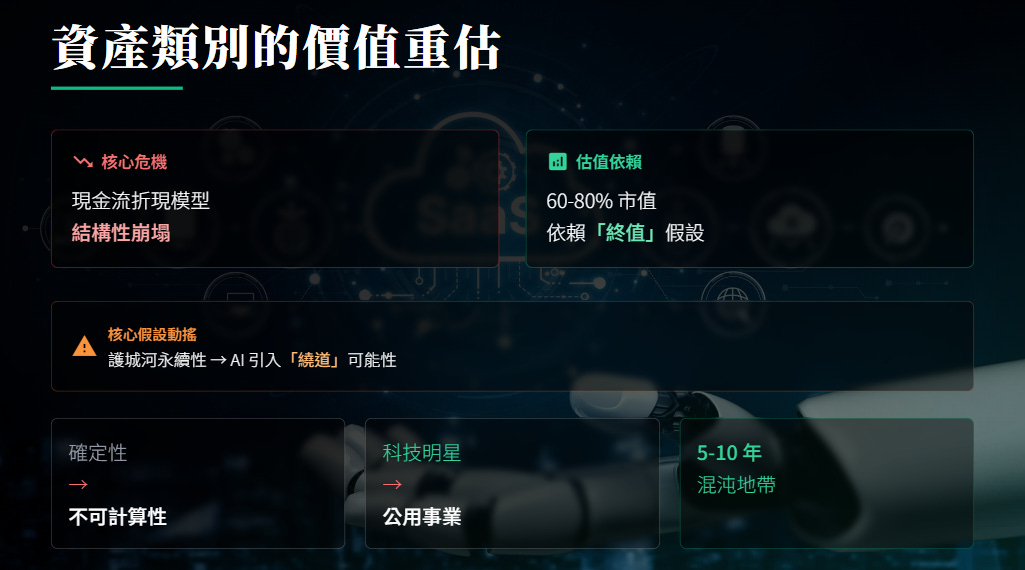這即是所謂的「通縮陷阱 (The Deflationary Trap)」。凡是針對「使用權 (Access)」而非「實際產出 (Output)」收費的軟體,都將隨著 AI 接管工作流而面臨劇烈的營收萎縮。