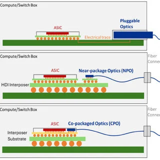 NPO(近封裝光學): 2026 年真正的中間點。它把光引擎放在緊貼晶片的旁邊(距離僅幾毫米),但沒有焊死,而是做成「插槽式」。享受了極致省電的好處,壞了還能單獨拔下來換。