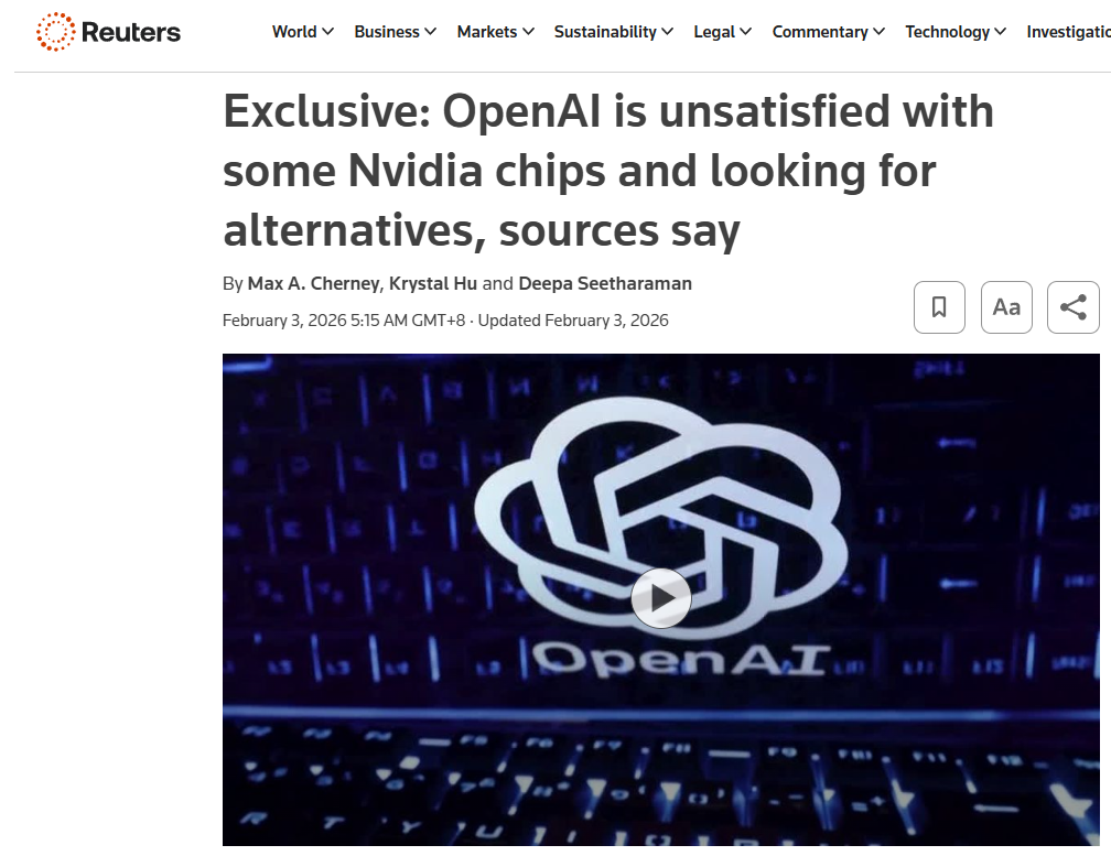 路透社的「背刺」:當 OpenAI 開始嫌棄 Nvidia 的晶片