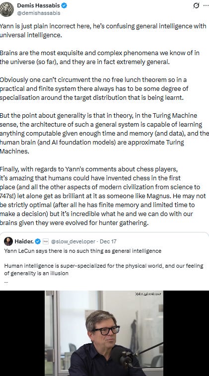 不過最近,Yann LeCun和Demis Hassabis就在X上,對AGI這個詞來了一次激烈交鋒。
