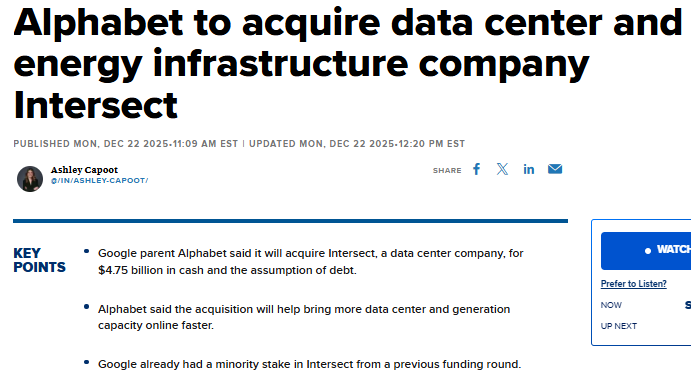 這是一筆極其有趣的收購:Google花了47.5 億美元,收購清潔能源開發商Intersect Power。卻明確表示不要對方正在賺錢的電廠,只要對方手裡的開發團隊和一疊許可文件。